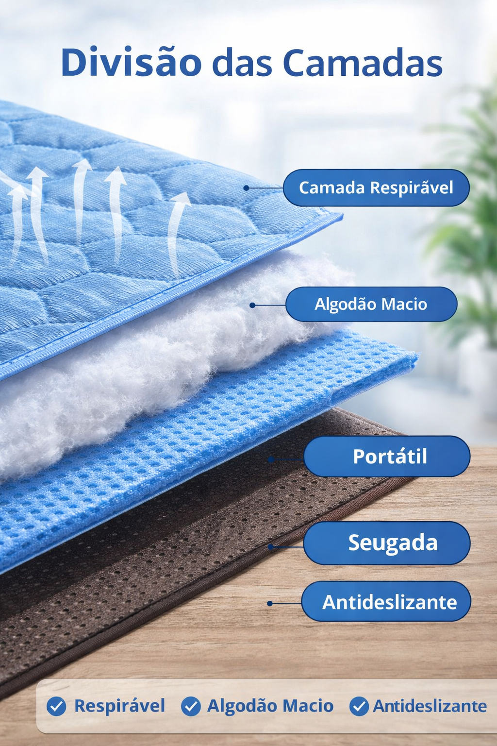 Mais segurança para o pet deitar e se movimentar sem escorregar.
