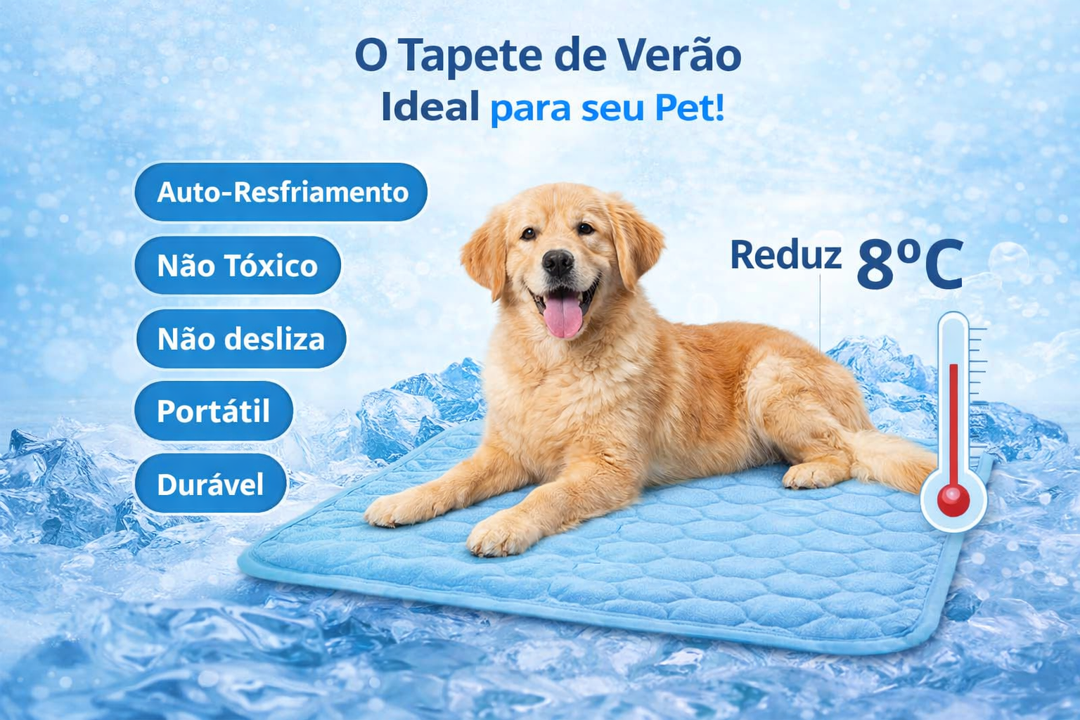 Pensando no bem-estar do seu melhor amigo, a Petit Pet traz o Tapete Gelado para Pets, uma solução prática, segura e eficiente para ajudar seu pet a se refrescar naturalmente.